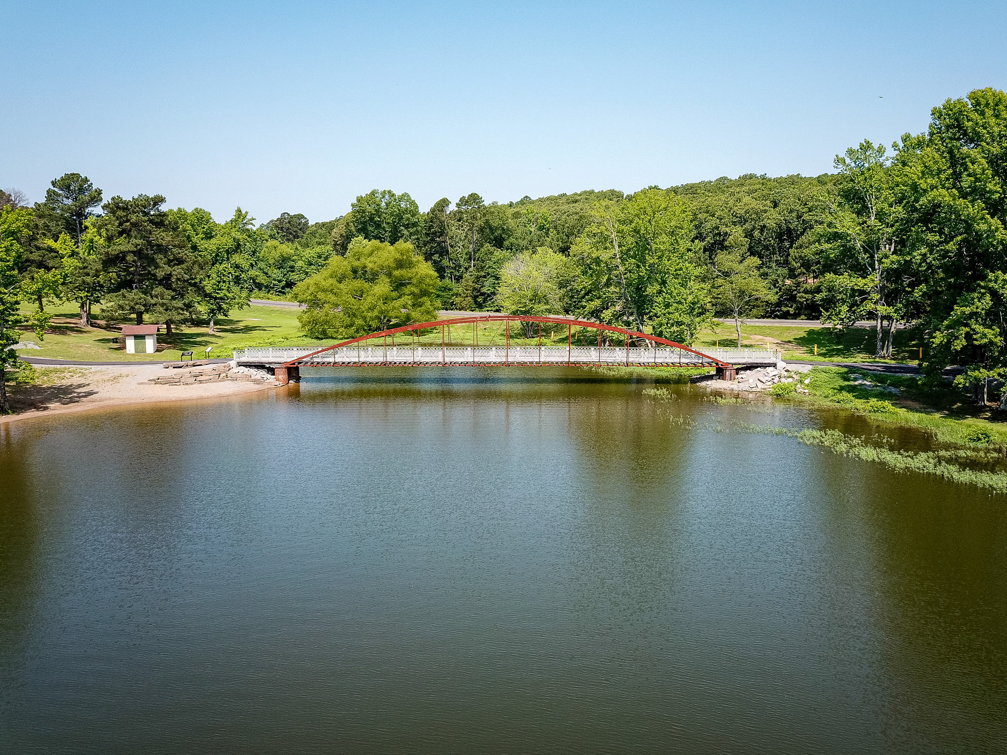 In 2017, the historic Springfield-Des Arc Bridge was relocated to Beaverfork Lake. From 1874 to 2016, the bridge spanned North Cadron Creek in rural Faulkner County but had fallen into disrepair. This bowstring iron truss bridge is one of the oldest of its type in the United States and was restored and reconstructed at Beaverfork Lake.